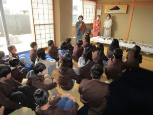 12月17日(水)に6年生が茶道体験を行いました。お辞儀の仕方をはじめ、茶室でのお作法をたくさん教えていただきました。細かな所作がたくさんあり、難しく感じることもありましたが、日本の伝統文化である「茶道」に触れるという大変貴重な体験をすることができました。