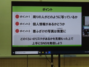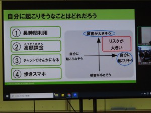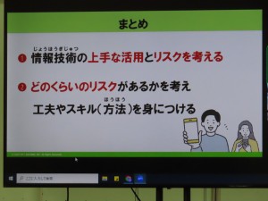 12月22日に5・6年生を対象にスマホ・ネット安全教室を行いました。SNSで発信する際やインターネット上の情報を活用する際の自分自身の行動にともなうリスクを意識することやリスクへの向き合い方と対処方法について、ワークをしながら学びました。また、人権擁護委員さんからはトラブルに巻き込まれたとき等、困った時の対応方法についてお話をしていただきました。