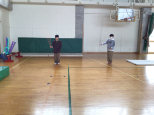 3学期がスタートして3日が経ちました。1,2学期は教室で行っていた体つくり運動を体育館でがんばっています。広い体育館を使って、走る・投げる・跳ぶなどいろいろな動きを取り入れて楽しく体を動かしています。