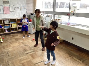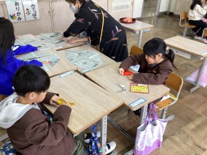 1月14日(水)の2時間目に生活科の学習で昔の遊びを体験しました。地域の方に学習ボランティアとして来ていただき、昔の遊びを教えていただきました。こま、けん玉、カロム、紙鉄砲、折り紙、お手玉、福笑い、あやとりの8つのコーナーがあり、それぞれの体験したいコーナーで遊びました。子どもたちはとても楽しそうな様子で、昔ならではの遊びに親しむ貴重な時間となりました。