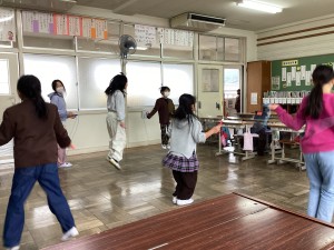 長浜市内の小学4年生を対象とした「マイ体力アップ事業」に北郷里小学校の4年生も取り組んでいます。この事業は、児童の「跳躍力」「筋力」を向上させるために、縄跳びの跳んだ回数で1人「1万回」を目指す取組です。4年生では、「4年生全員で20万回達成しよう」という目標を設定し、体育の授業だけでなく、休み時間など時間を見つけて、進んで縄跳びに取り組んでいます。4年生全員が「みんなで頑張ろう」という気持ちをもって継続できるよう、今後も声かけをしていきます。ぜひご家庭でも、「今日は何回跳べたかな」などと声をかけていただけると幸いです。