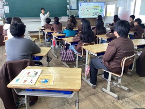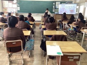 岡崎医院の中村郁恵先生を講師に招き、「思春期の子ども達の心と体の変化」と「人との関わり方」についてお話しいただきました。子ども達は終始、真剣に話を聞いていました。将来のことを考えて、自分の生活や健康に向き合うきっかけになったと思います。