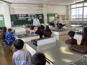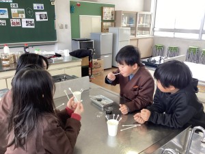 2学期の国語科「すがたをかえる大豆」の学習で大豆がさまざまな食品に姿を変えていることを読み取りました。その学習と関連づけて、1月26日(月)の3校時にしょうゆもの知り博士(日本醤油協会の講師)に来ていただき、しょうゆづくりについて教えていただきました。 実際の製造過程を見せていただいたり、本物のしょうゆを味見させていただいたりすることで、学んだ内容を実感をもって体験することができました。子どもたちにとって、学びが深まる貴重な機会となりました。