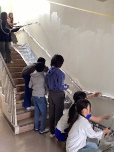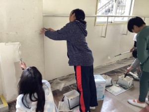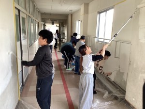 2月13日(金)の5校時に校舎壁面のペンキ塗装を行いました。この活動は、子ども達が「最後に学校をきれいにして卒業したい」と自分たちで声を上げて実現したものです。北校舎1階と、南校舎の階段の壁をきれいにしました。おかげで学校が明るくなりました!少し肌寒い中でしたが、学校のために一生懸命に取り組む姿に感心しました。「卒業してしまうからいいや」ではなく、「卒業するからこそ、きれいにして旅立とう」という気持ちが嬉しかったです。卒業まで残りわずかとなりましたが、それぞれが気持ちを高めています。